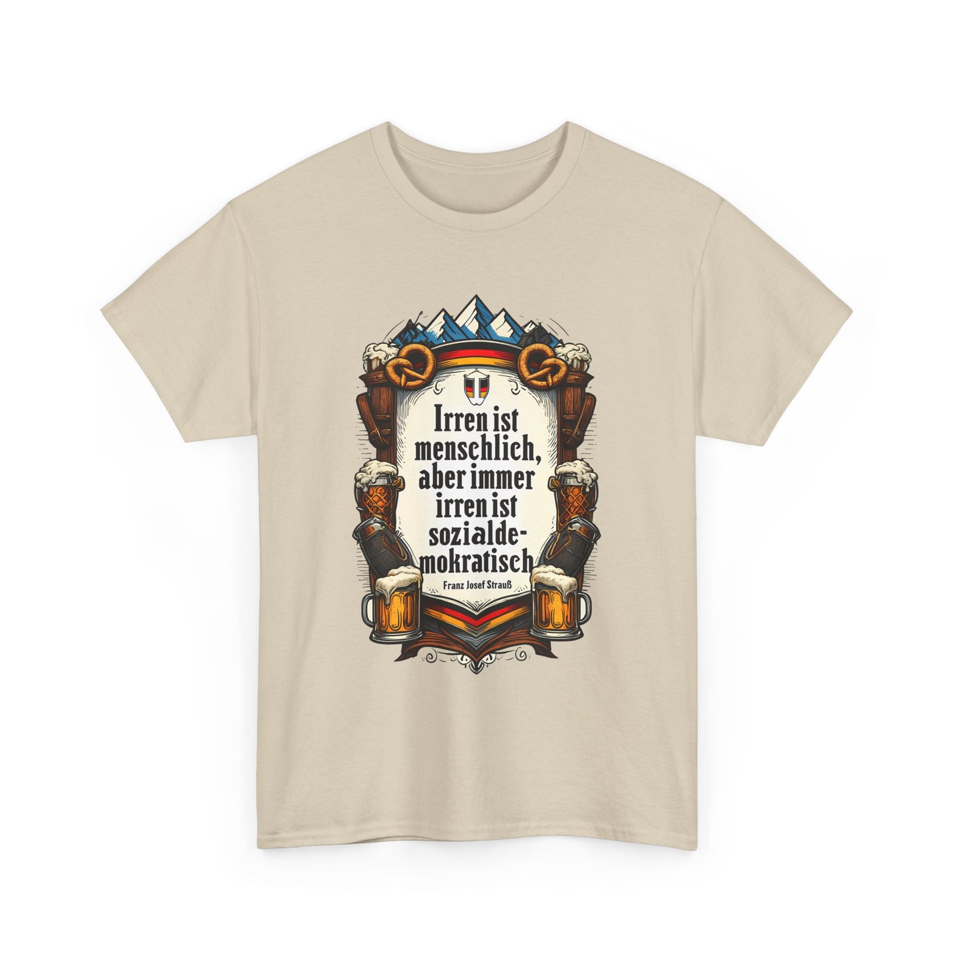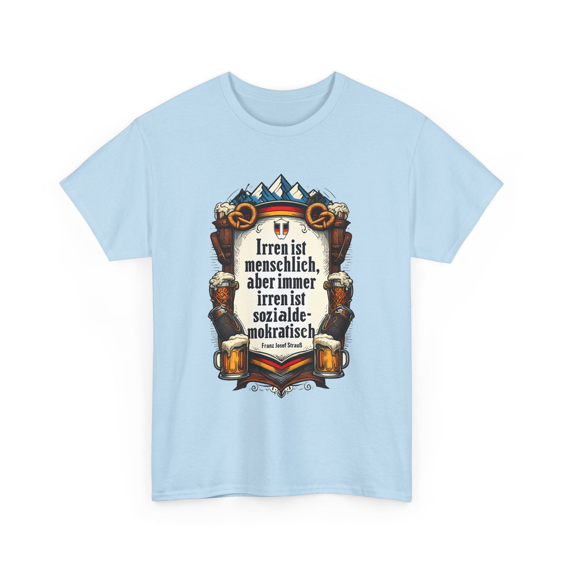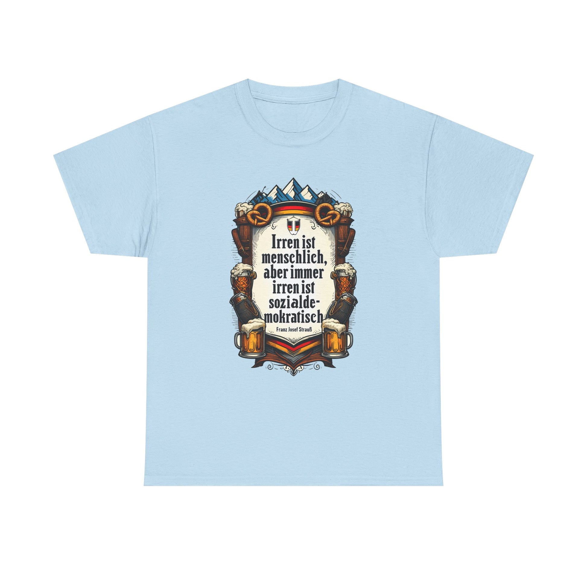 Unisex-T-Shirt aus Baumwolle - Franz Josef Strauß | Zitat: Irren ist menschlich